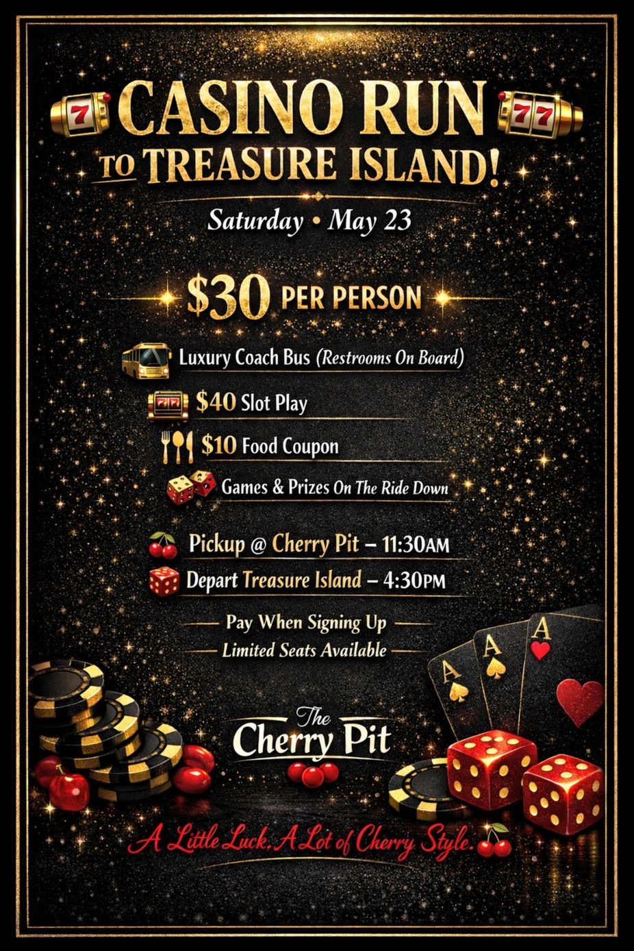 This Saturday! SATURDAY FUN STARTS AT 1PM! Grab your crew and come play Progressive Bar Bingo at Cherry Pit Bar & Grill Every Saturday at 1PM Meat & Gift Card Raffles Double It Up for a Buck Happy Hour Progressive Jackpot grows weekly! Bring your friends, grab a drink, and let’s see who’s yelling BINGO! Cherry Pit Bar & Grill #CherryPit #BarBingo #SaturdayFun #StillwaterMN #MeatRaffle#GiftCardGiveaway #WeekendVibes01:00 PM - 03:00 PM