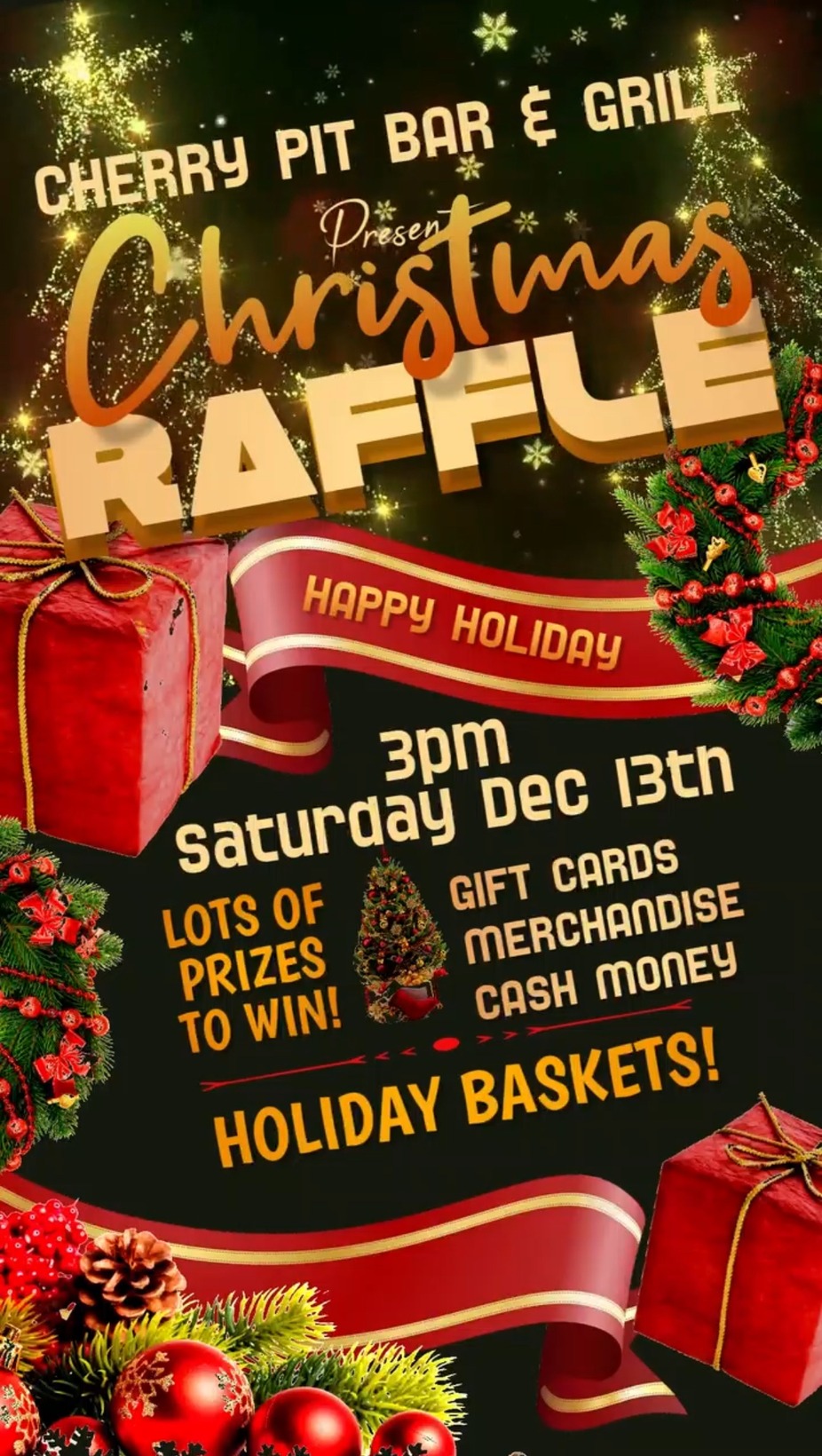 Christmas Raffle! Just in time for Christmas~ Gift cards, merchandise, CASH and Holiday baskets! Lots of prizes to win! Saturday December 13th 3pm